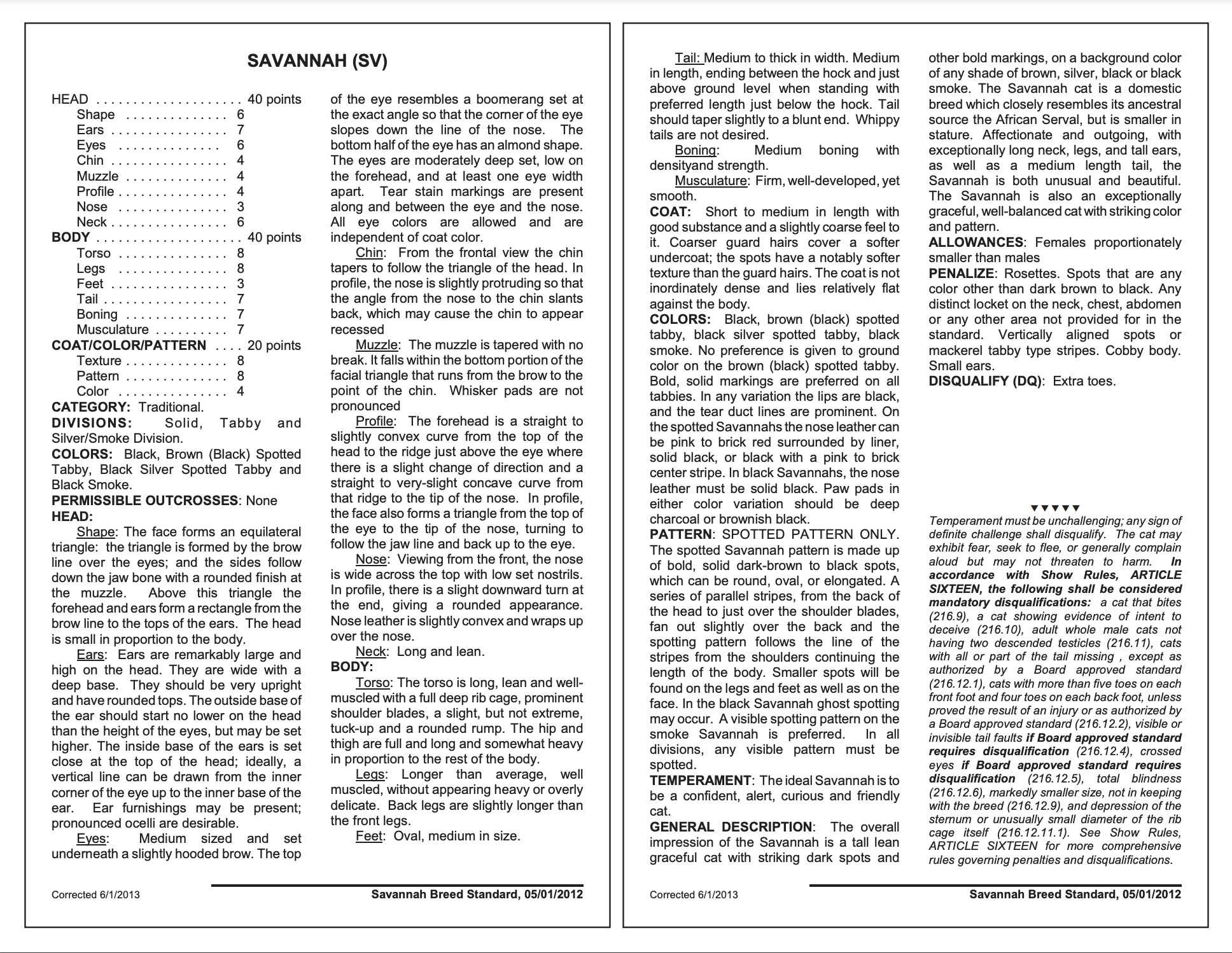 THE SAVANNAH BREED STANDARD